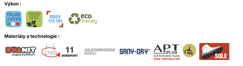 | Speciální vlastnost: | Absorpce energie v oblasti paty, Ochranná špice 200J, Protiprůrazová mezipodešev, Protiskluzové, Uzavřená pata |