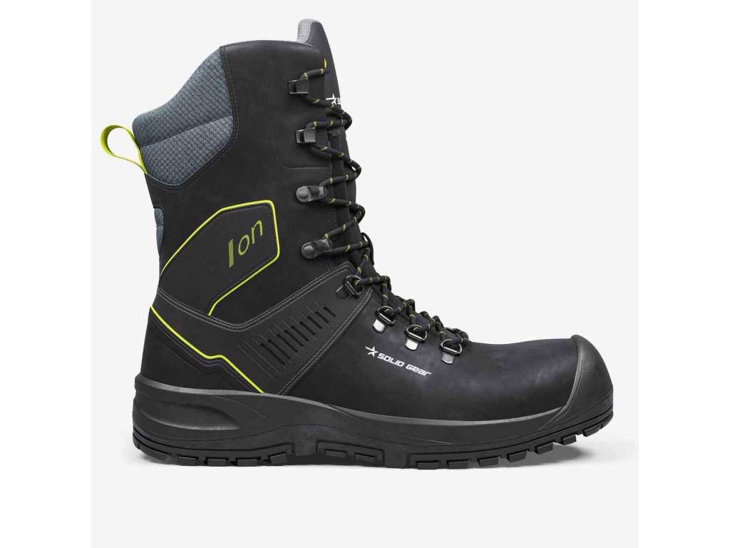 Svršek má z jakostní LWG kůže, podšití ze syntetické kožešiny výborně izoluje a současně odvádí vlhkost od chodidel, protiskluzná gumová podešev zajišťuje stabilní chůzi a o maximálně pohodlnou chůzi se postará mezipodešev z měkké PU pěny a stélka z polyuretanové pěny s otevřenými buňkami. Zapínání je řešené pro zimní podmínky, tedy jednoduše a prakticky: na tkaničky v kombinaci se zipem YKK™. Ochranné prvky tvoří sklolaminátová tužinka a měkká vložka proti propíchnutí. Celkovou ochranu vyjadřuje norma EN ISO 20345:2022 S3L, SR, HRO, FO, CI. Boty Ion mají také ochranu proti elektrostatickému výboji v souladu s normou EN IEC 61340-5-1:2016.