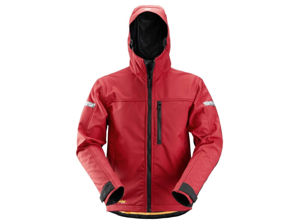 Bunda softshell AllroundWork s kapucí pánská červená XXL Snickers Workwear
