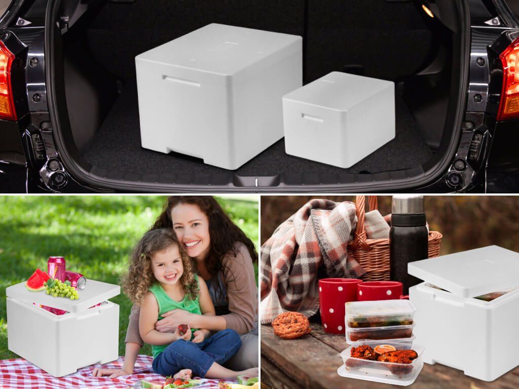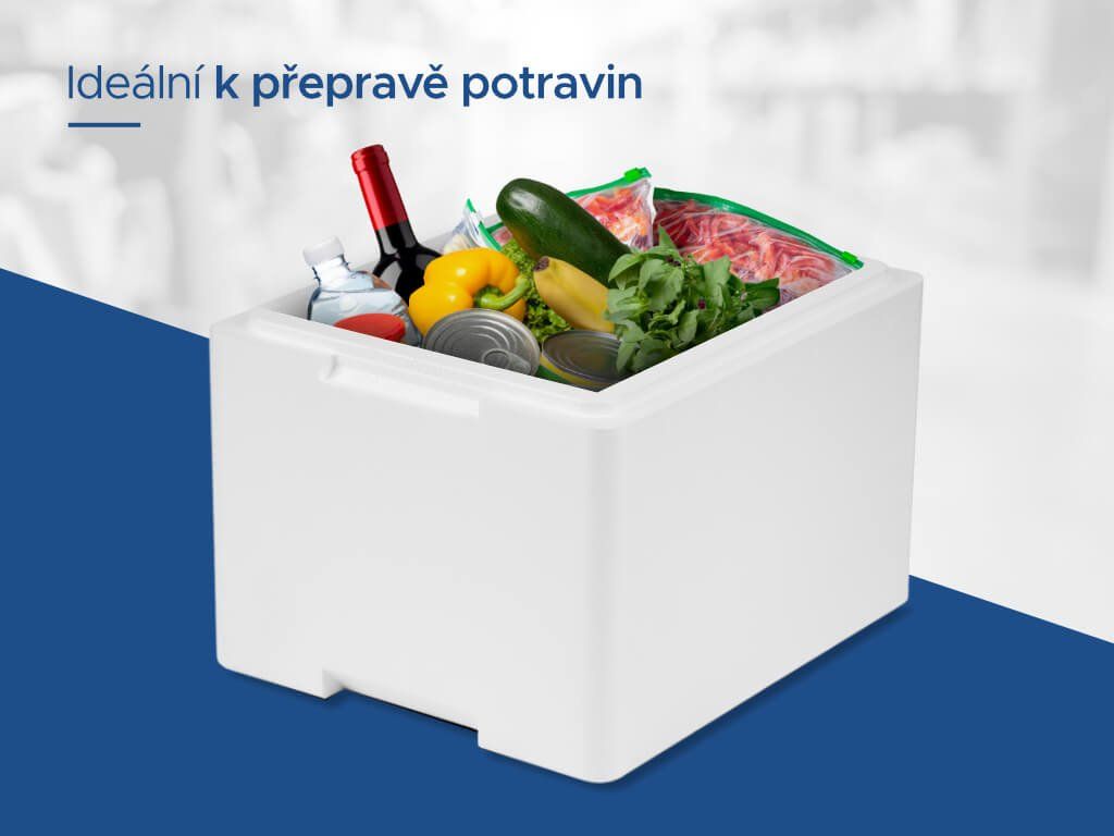 Tento polystyrénový termobox je vhodný pro přepravu potravin a chlazených produktů, kdy je schopný uchovat potraviny v požadované teplotě. Jeho teoretická nosnost je 35 kilogramu a objem 50,3 litru.