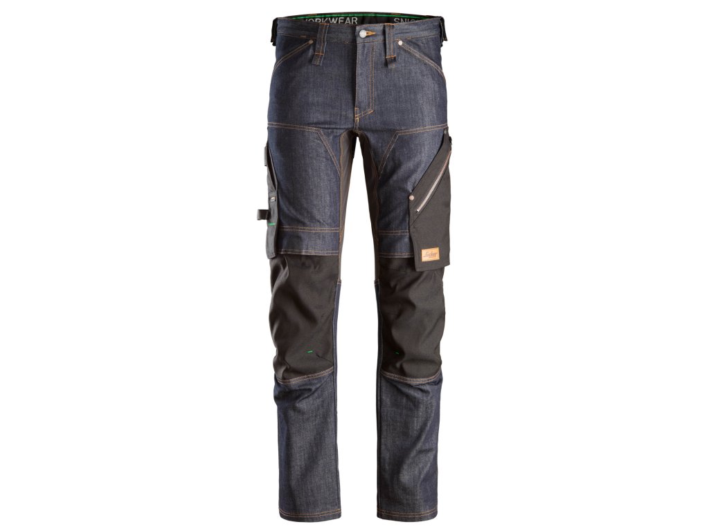 Odolný denim s dvousměrně elastickými panely Zúžený střih Ochrana kolen KneeGuard™ je v souladu s normou EN14404 Na levém stehně je prostorná kapsa z elastické Cordury® se zapínáním na zip Na pravém stehně můžete využít kapsu na metr, tužku a další pomůcky V pase na bocích jsou silná poutka na suchý zip na uchycení držáku například na kladivo apod.Doplňkové parametry